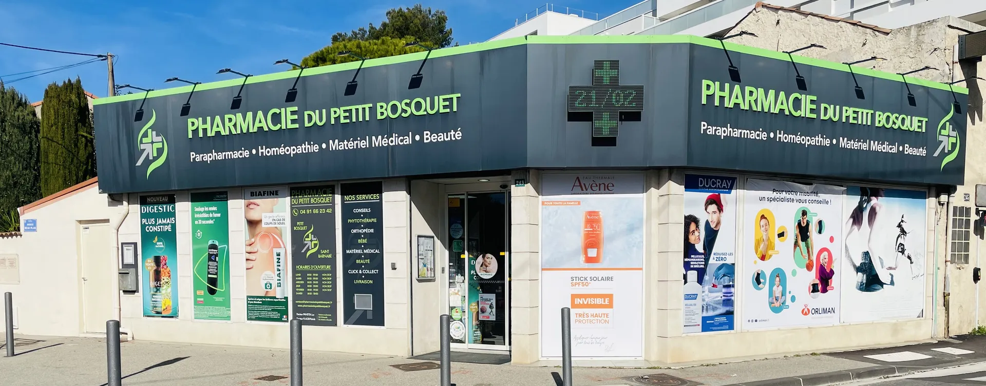 La pharmacie Panetta , encore appelée Pharmacie du petit Bosquet vous accueille du lundi au samedi pour la délivrance de vos ordonnances, des produits de parapharmacie, d'aromathérapie et phytothérapie, d'orthopédie ou du matériel médical.