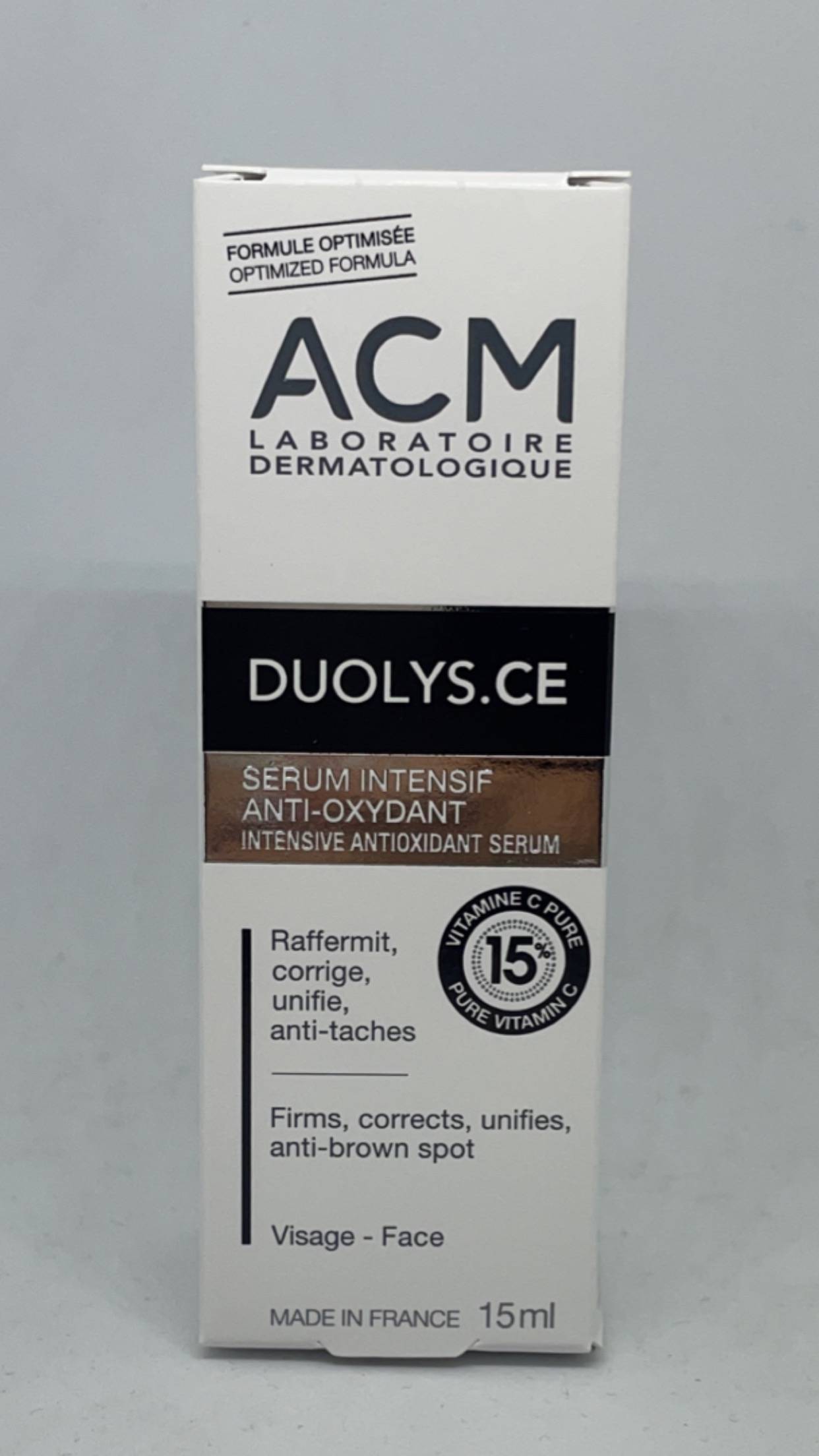 la pharmacie le petit Bosquet vous présente son nouveau produit ACM sérum intensif anti-oxidant de la gamme DUOLYS. CE .