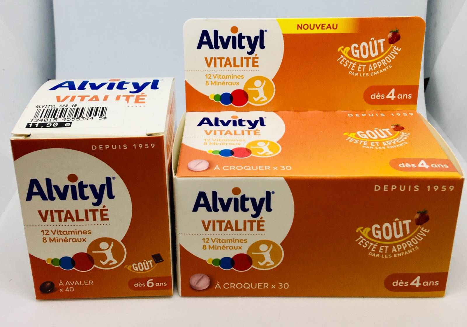 La pharmacie du petit bosquet vous conseille l'alvityl sirop vitalité 150ml dès l'âge de 3 ans pour sa formule qui associe 11 vitamines spécialement dosées pour couvrir 100% des valeur nutritionnelles de référence pour assurer forme et vitalité physique et participer à la croissance osseuse (vitamineD).