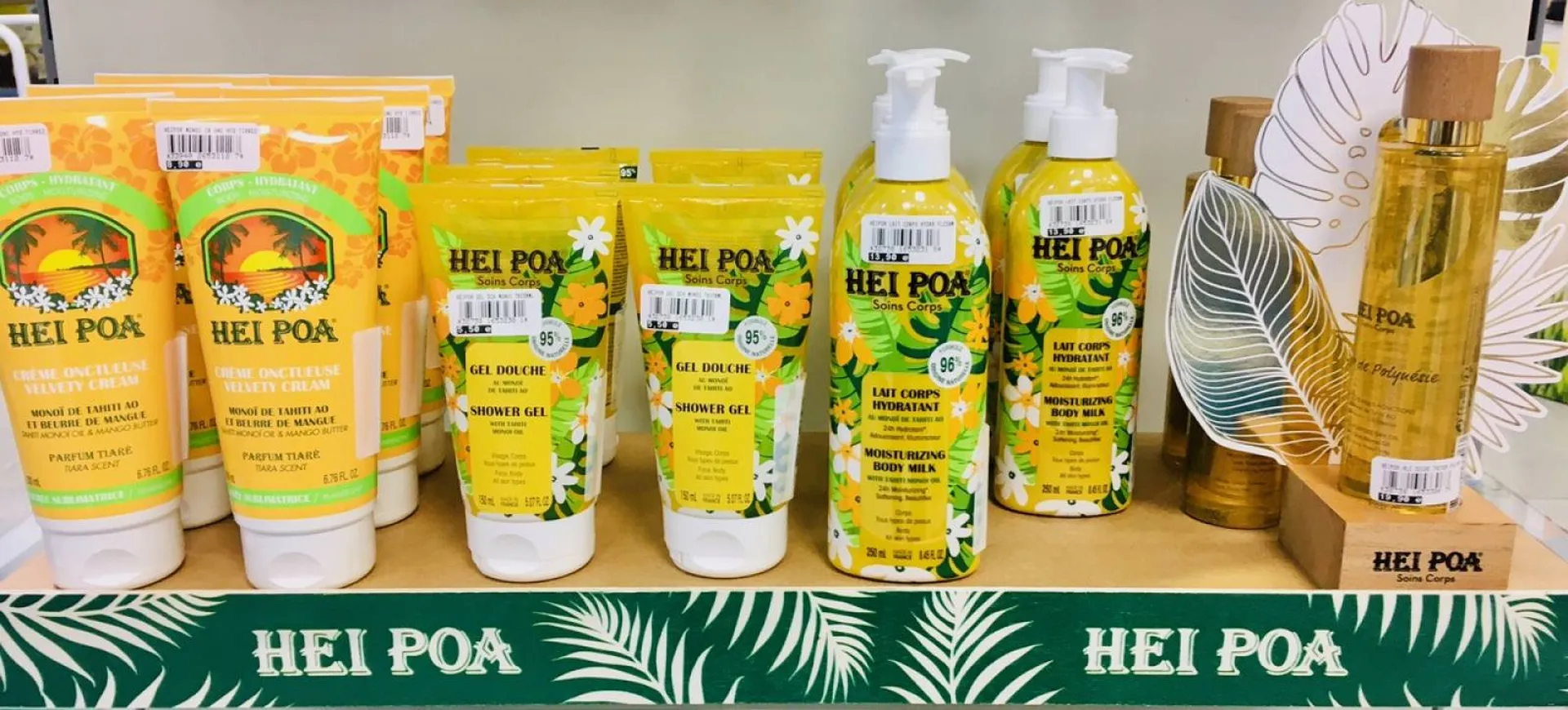Le monoï HEI POA est à nouveau décliné sous 12 parfums toujours à base minimum de 94% de monoï de tahiti Ao: