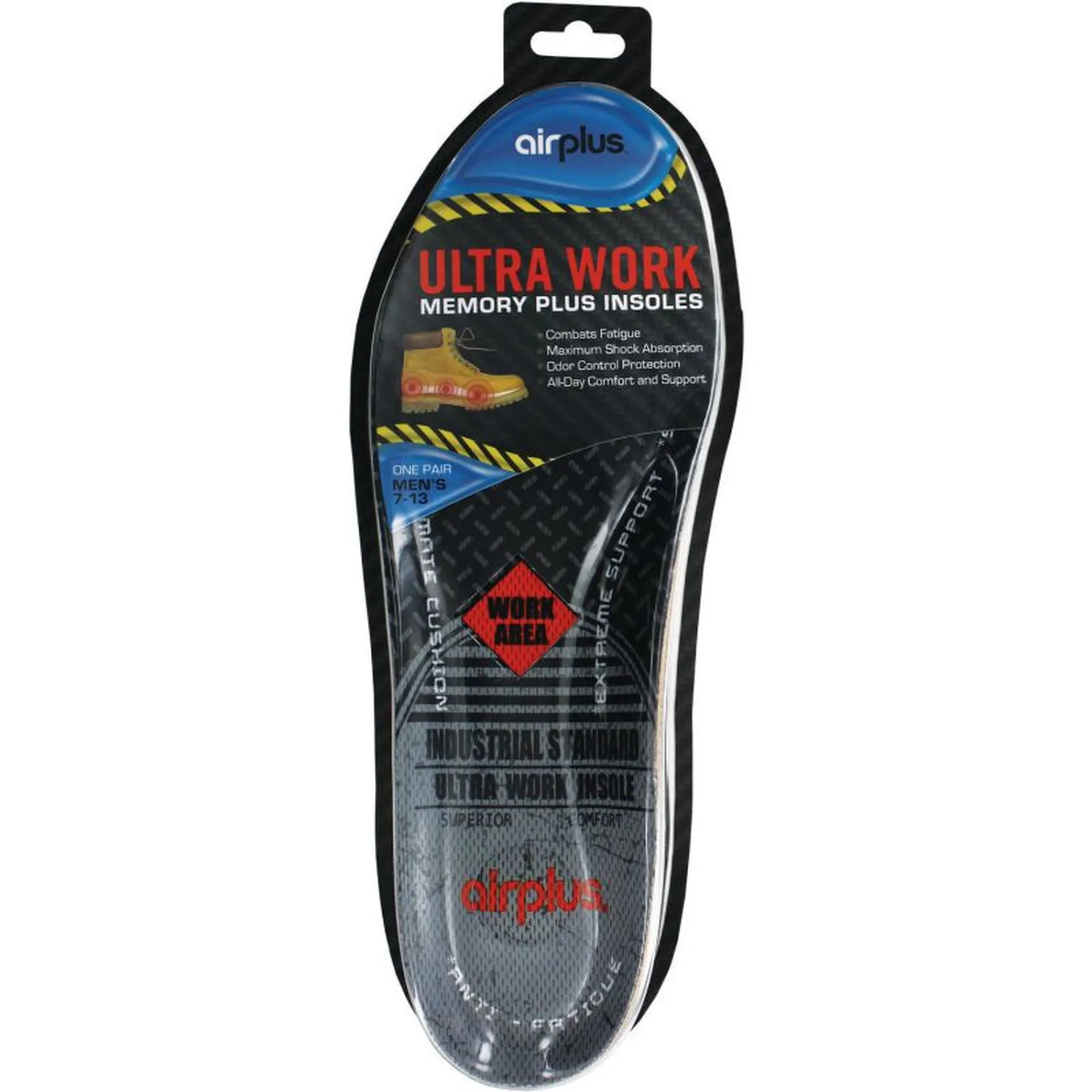 Les Air plus ULTRA WORKsont faites d'une structure en mousse résistante à memoire de formequi s'adapte à l'anatomie du pied. Elles aident à combattre la fatigue due à une station debout ou une séance de travail prolongé. Ideale pour tout type de chaussures de travail, elle soulage les douleurs causées par le travail sur sol durs ou terrains accidentés. Un additif anti-microbien protège des bactéries responsables des odeurs. Prix= 12,95€