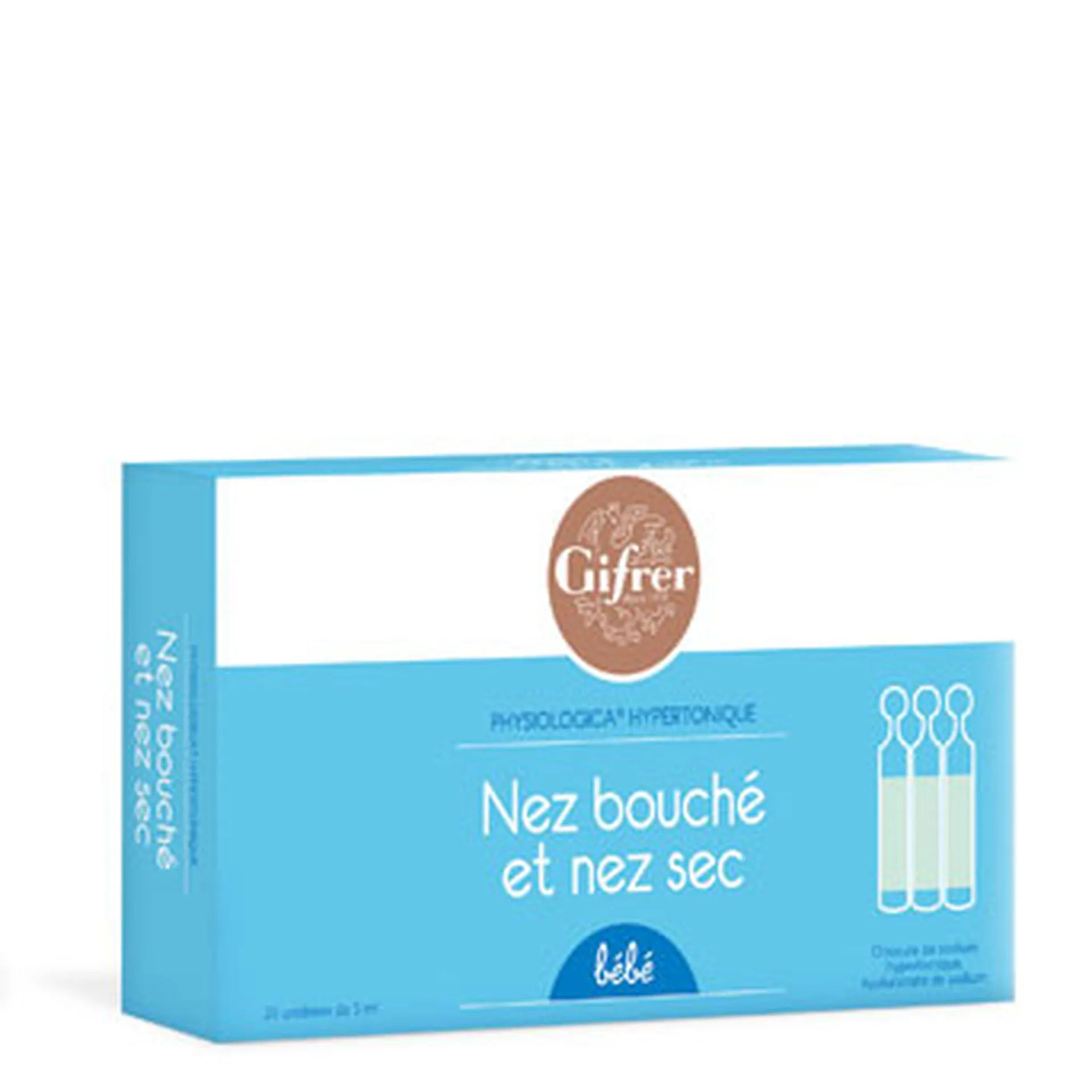En effet, les dosettes de serum physiologique HYPERTONIQUE de GIFRER sont idéales pour le décongestion et le lavage des fosses nasales de bébé.